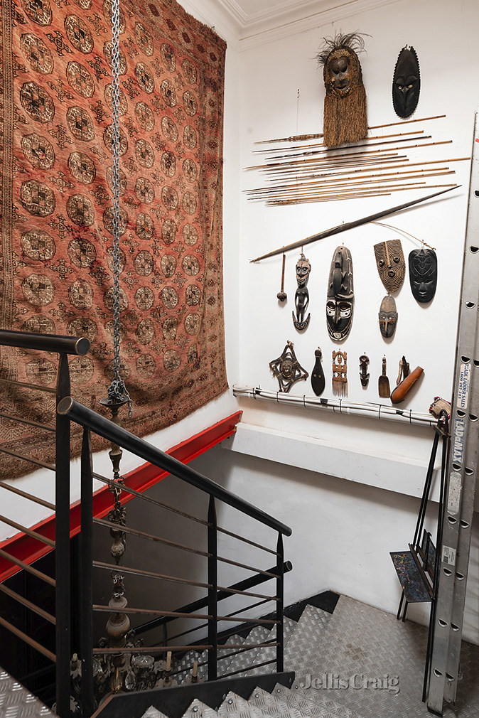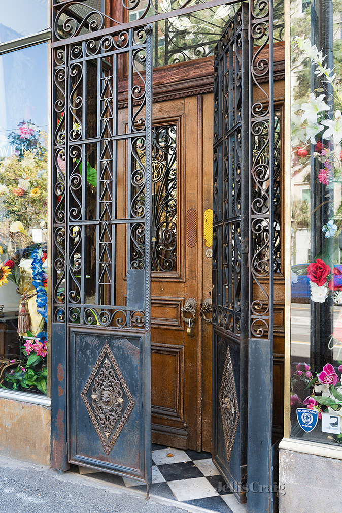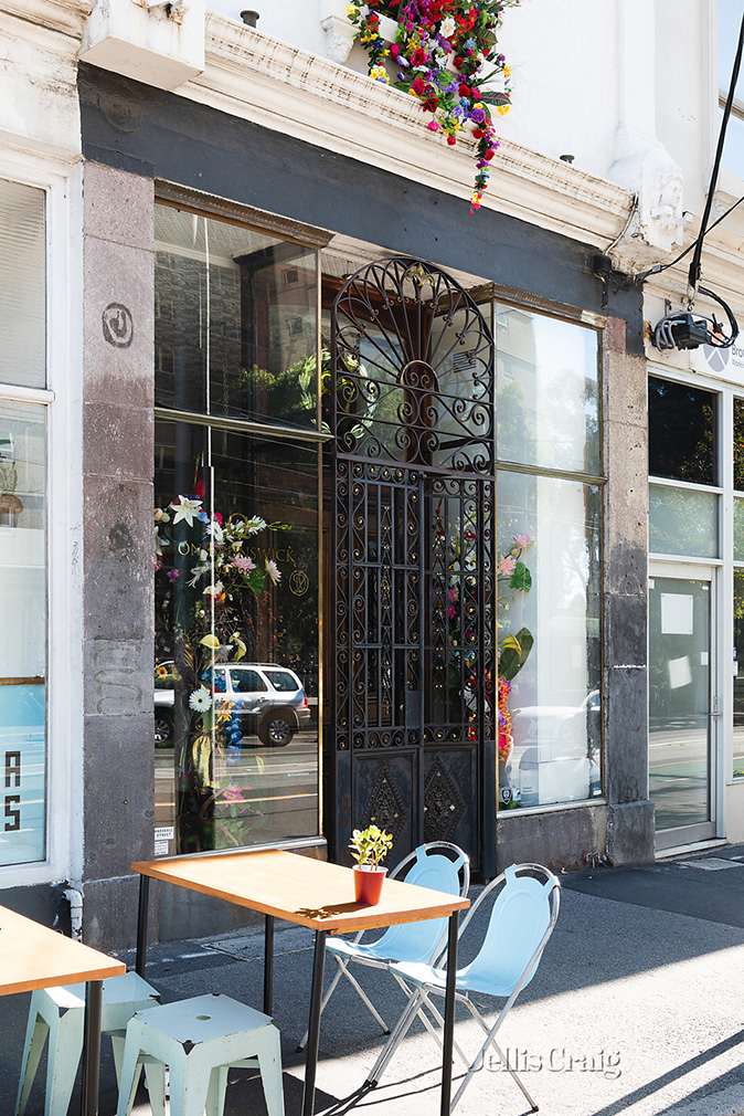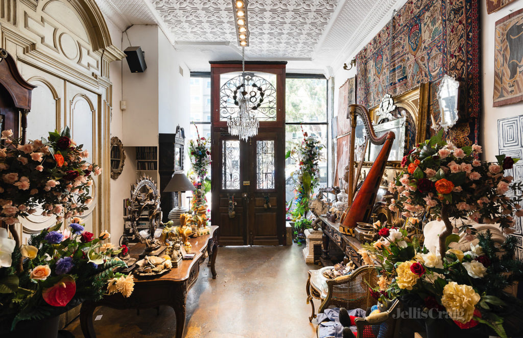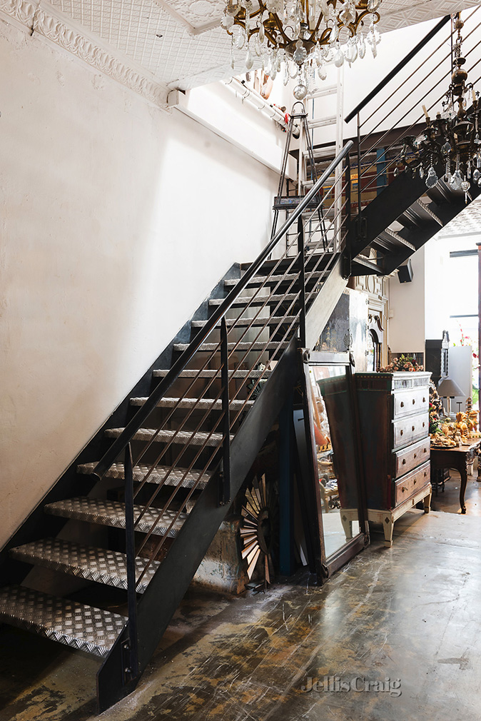 Gilded windows and original wrought iron details frame the front of this Victorian store – up for auction in Melbourne’s Fitzroy neighbourhood with a guide price of $1.05m AUD.