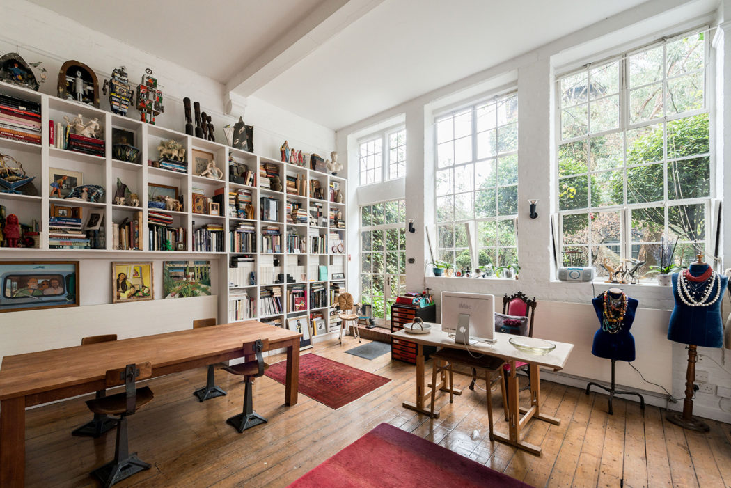 At the opposite end of the 2,306 sq ft London property – now on the market via The Modern House for £2.495m – is a light-filled, soaring studio space and kitchen.