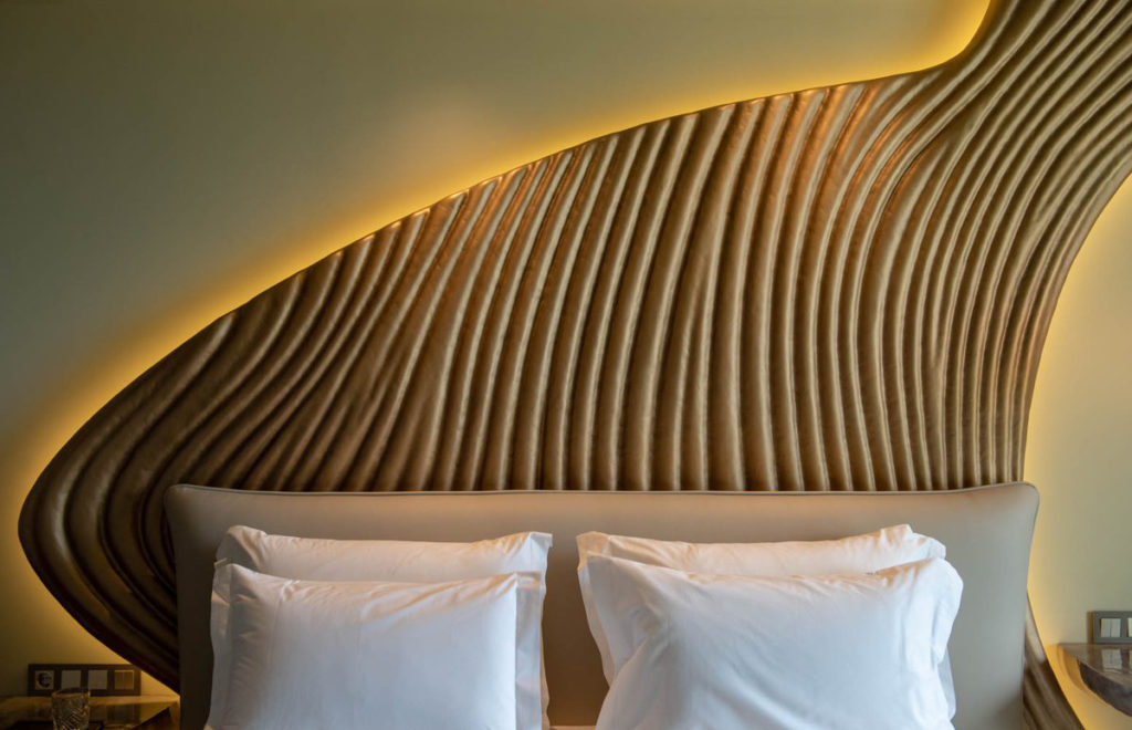 In the restaurant, diners sit surrounded by restored baroque elements, but it’s a different story in the hotel’s 68 bedrooms, where Silva has taken a more minimal approach. There are also a few quirky additions – such as sculptural headboards that extend up and into the ceiling.