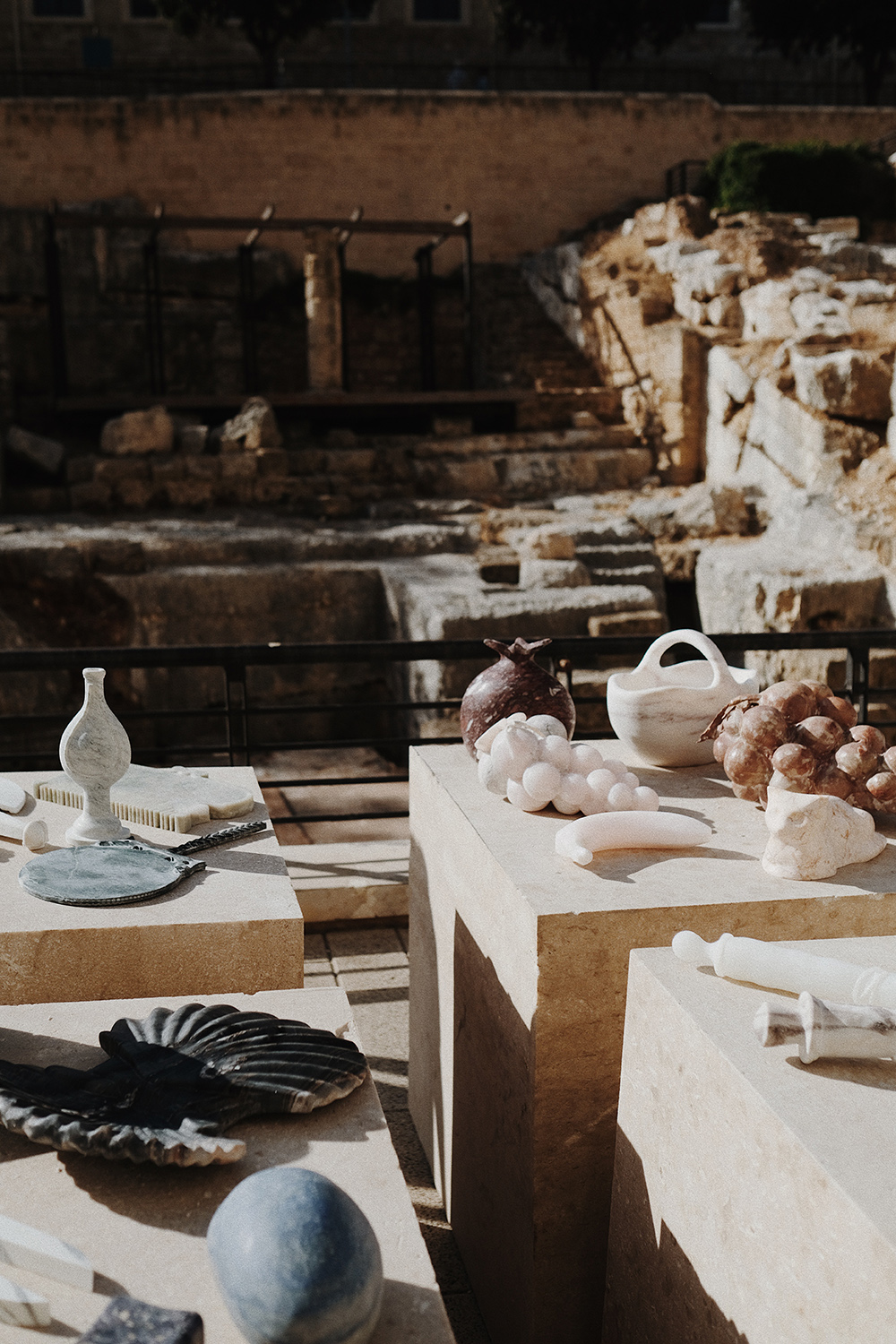 This celebration of Levantine women introduced four marble objects that represent four timeless archetypes: Barbara the Healer, Mariam the Bride, Theodora the Poetess and Martha the Mother. The stories of these women unfolded through a tablet, mirror, bowl and zither — objects they once handled, made from stone they walked during Roman times.