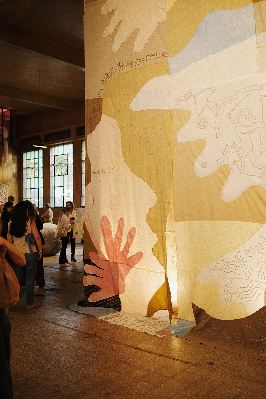 A monumental cloth mural by Ahmed Amer, Textured Love rose from layers of dead-stock fabric, embodying resilience, memory, transformation, belonging and hope.