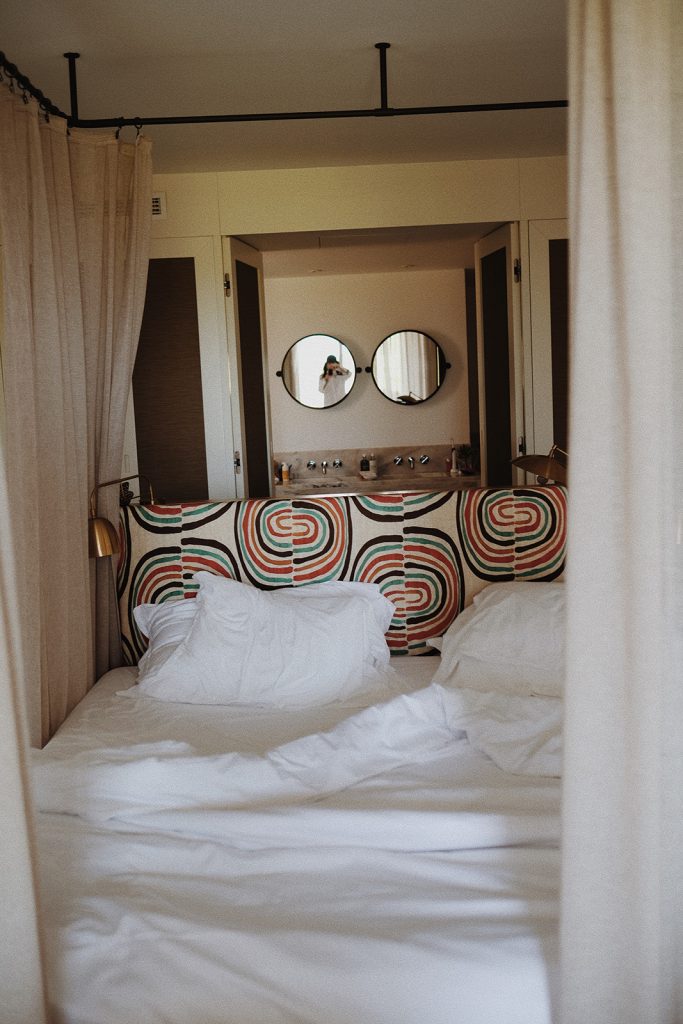 Overlooking the Atlantic Ocean, the suites feel like oases. Constança de Castro Fernandes’s design flawlessly balances texture, material and light to create a space that soothes the senses. The thoughtful design features an earthy palette and natural textures like wood and rattan. Wide window openings make the transition between indoor and outdoor spaces seamless, opening up to the park that overlooks the ocean.