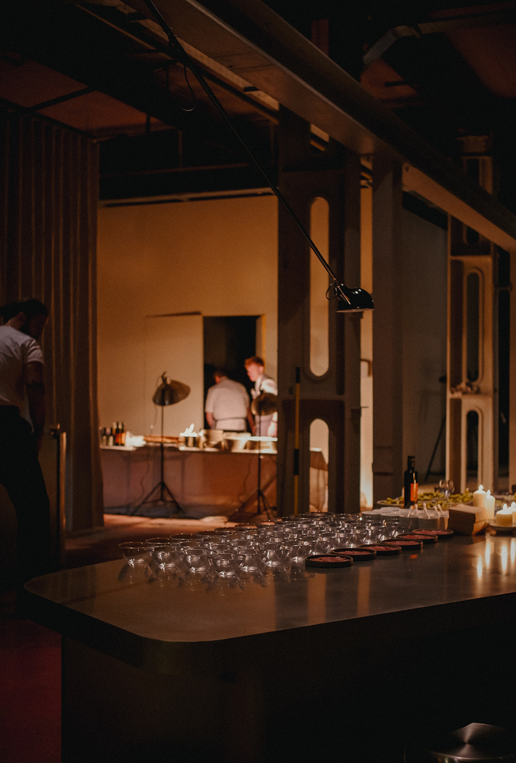 The soft brutalism of Black Crocodile creates a calming atmosphere at this new restaurant in western Poland designed by local practice Wiercinski-Studio. The dining room sits inside historic Betonhaus Hall in Wilson Park, a former exhibition pavilion for the 1911 East German Exhibition of Industry, Crafts and Agriculture, renovated in 2024. High ceilings and tall windows define the space, lined with a 13-metre bar that was crafted by hand from raw steel and solid oak. Two geometric chandeliers highlight the raw, textured walls, and linen accents add a dramatic aura.