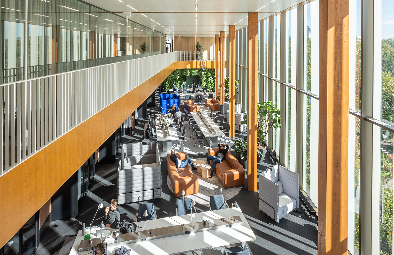 Dutch developer Edge, known for its intimate entrance halls, has also seen positive leasing patterns off the back of its hotel-style developments, reporting that 38% of new office leases cited hospitality and design as key decision-makers. ‘These findings underline how a well-serviced, people-first workplace not only attracts tenants but also strengthens their long-term commitment to the building and its community,’ says managing director Vivian Suhr.