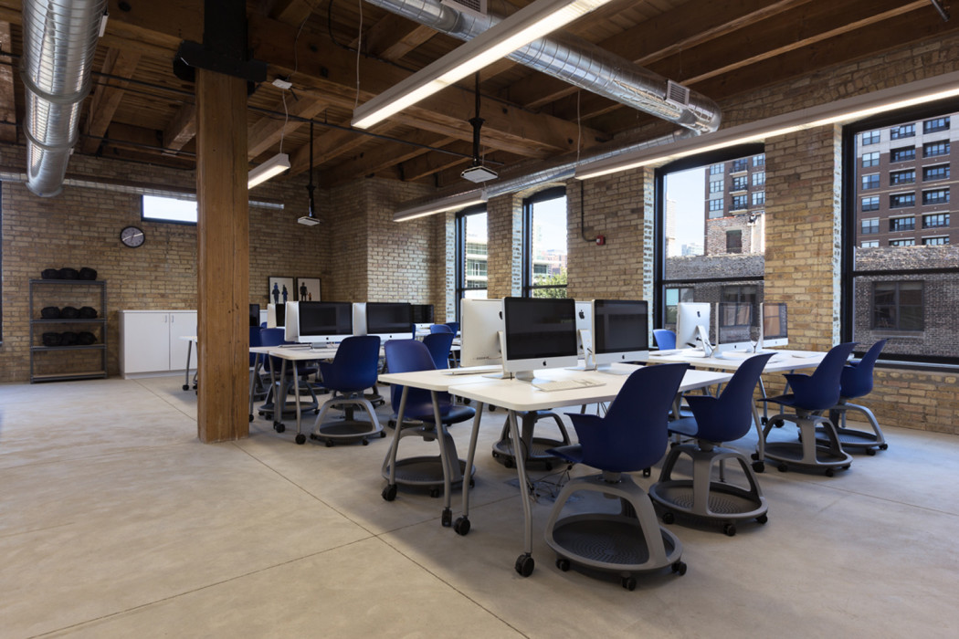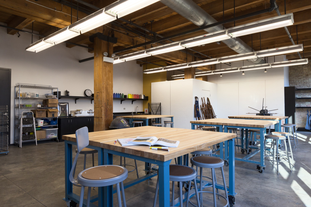Renovation work was done on a tight budget, bolstered by donated fixtures and furnishings. It’s a theme at Marwen. Art materials – a pricey proposition for artists of all stripes – are provided free to students. Architecture firm Gensler teamed up on the interiors, presenting a ‘catalogue of wants’ to vendors to see what might be procured on the cheap.
