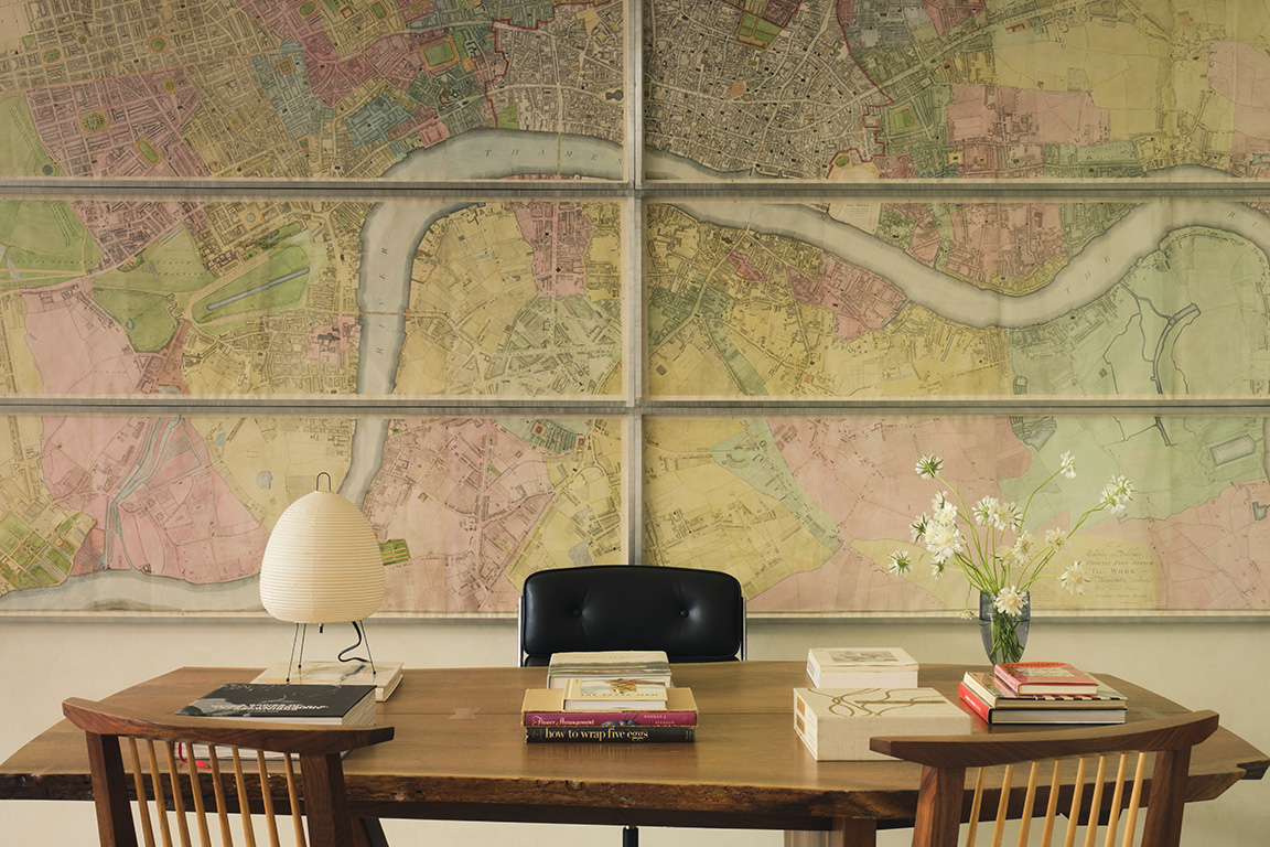 Interior designers gravitate to maps like they would a silk kimono or a vintage advertisement — as an expression of intellectual curiosity and discerning taste. Alex Eagle and Sophie Hodges of London practice Eagle + Hodges recently hung two maps of old London at their 180 Thames residential project — one by Richard Horwood in the 18th century, another by Radulphus Aggas in the 16th. ‘We like to make a space functional and utilitarian by decorating with practical things in an elegant way,’ says Eagle. ‘It gives a sense of space and time and exploration — it’s almost like an adventure to work out where you are. And they’re so decorative.’