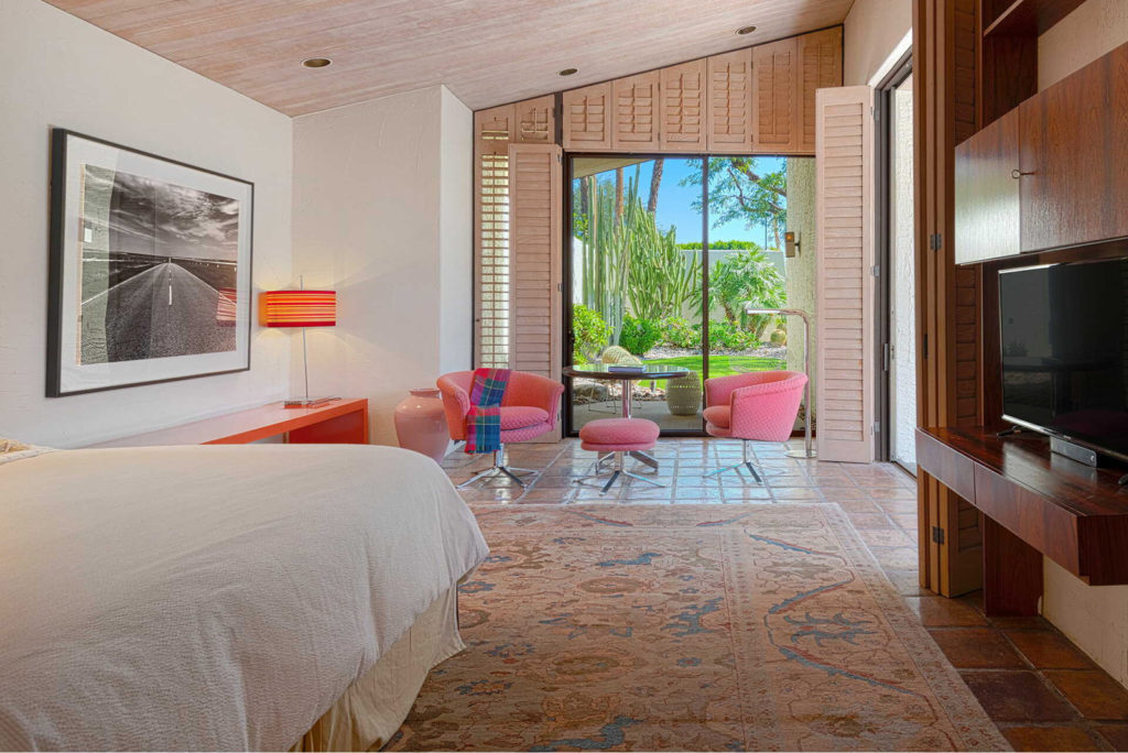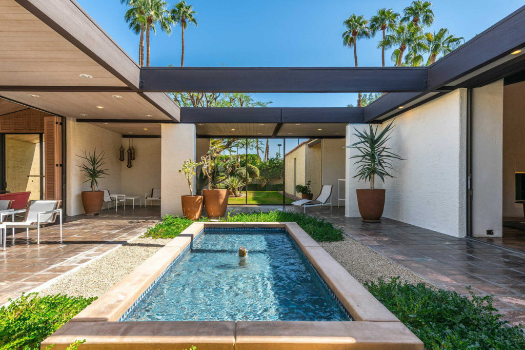 They asked Cody – the architect responsible for many of Palm Springs’ modernist houses and country clubs – to model the home on the hacienda style. Cody incorporated white walls, a tiled roof, and a central courtyard that’s left open to the sky.