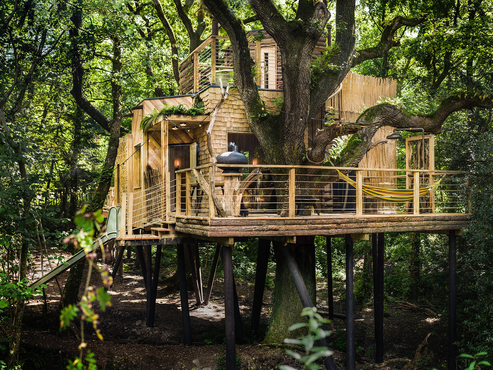 Offers in excess of £2 million have a crack at this beloved forest retreat, built by master woodworker Guy Mallinson across 13.25 acres of West Dorset woodland. Recognised with four RIBA architectural awards, the property is anchored by three treehouses raised high in a canopy of veteran oaks by self-supporting structures that never touch the trees themselves. Screw-pile footings replace concrete, allowing the forest floor, root systems and water courses to remain intact. For more than 15 years Mallinson let them out to holiday-makers under the banner of Mallinson’s Woodland Retreat. He’s decided it’s time to sell the business in full.