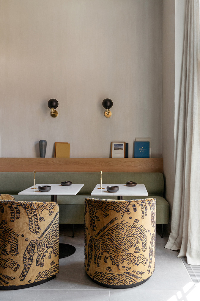 Downstairs, visitors can browse furniture from the Danish brand – complemented by artworks by the likes of Benjamin Ewing and Sofia Tufvasson – then deliberate purchases over a coffee or cocktail from the marble bar.